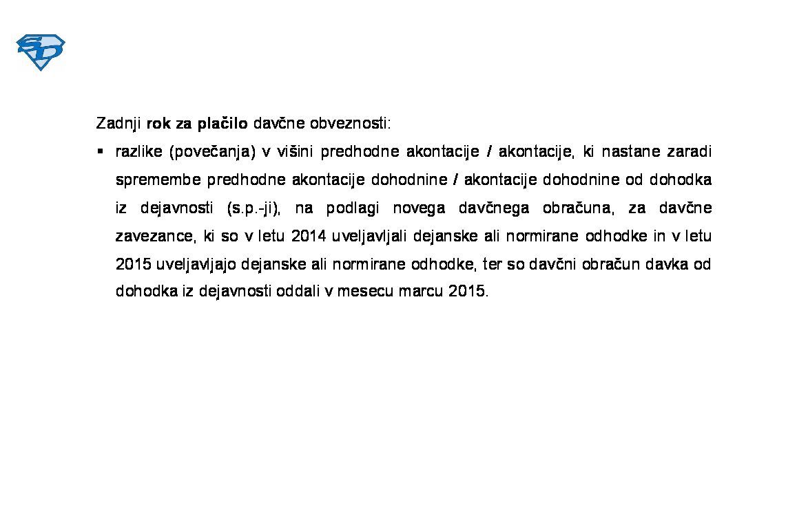 Sprememba predhodne AkDoh / AkDoh od dohodka iz dejavnosti za leto 2026 (obračun DOHDej) med davčnim letom 2026-08-03 00:00:00