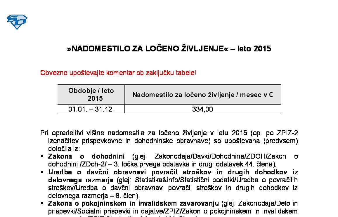 NADOMESTILO ZA LOČENO ŽIVLJENJE – leto 2024 15.01.2024