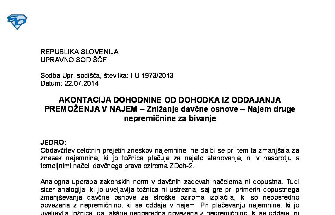OPRAVLJANJE DEJAVNOSTI S SKRAJŠANIM DELOVNIM ČASOM ZARADI STARŠEVSTVA – Ugotavljanje davčne osnove z upoštevanjem normiranih odhodkov in izpolnjevanje pogoja obvezno zavarovane vsej ene osebe za polni delovni čas (I U 1630/2022-15) 13.11.2025 13.11.2025