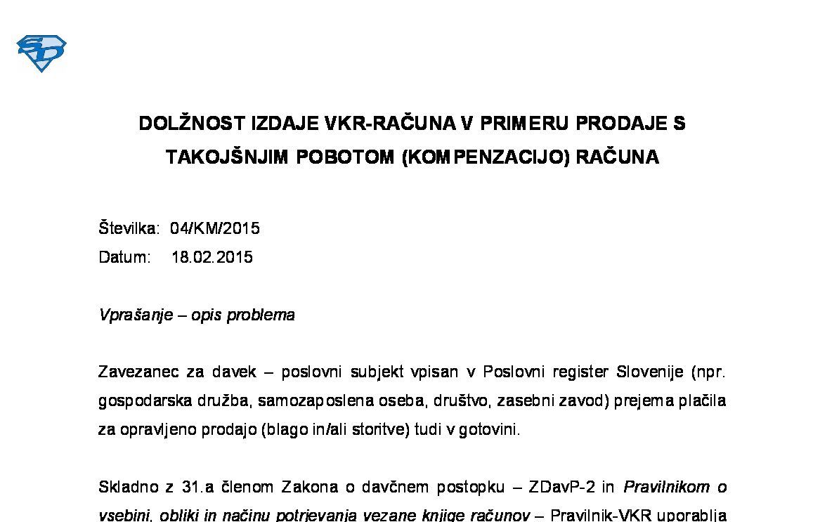 IZDANI RAČUNI PRI GOTOVINSKEM POSLOVANJU – Dnevni iztržki – Zbirno evidentiranje v poslovne knjige in DDV evidence 17.09.2025 18.09.2025