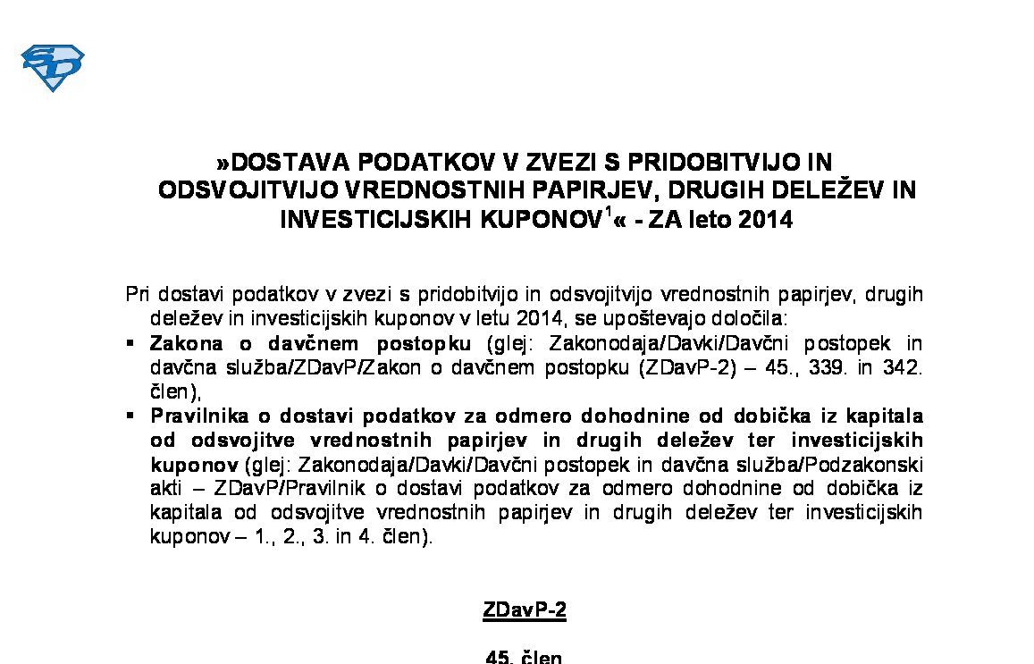 NAPOVED ZA ODMERO DOHODNINE OD DOBIČKA OD ODSVOJITVE VP IN DRUGIH DELEŽEV TER INVESTICIJSKIH KUPONOV (tudi pobot in odlog ugotavljanja) - ZA leto 2025 21.01.2026