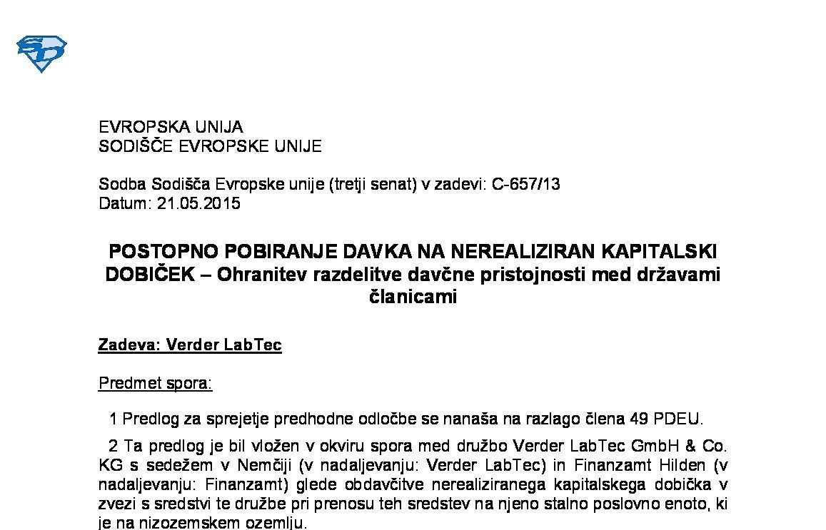 SKUPNI SISTEM OBDAVČITVE ZA ZDRUŽITVE, DELITVE, DELNE DELITVE, PRENOSE SREDSTEV IZ ZAMENJAVE KAPITALSKIH DELEŽEV – Delna delitev – Neobstoje zmanjšanja kapitala (C-318/22) 16.11.2023 18.04.2025