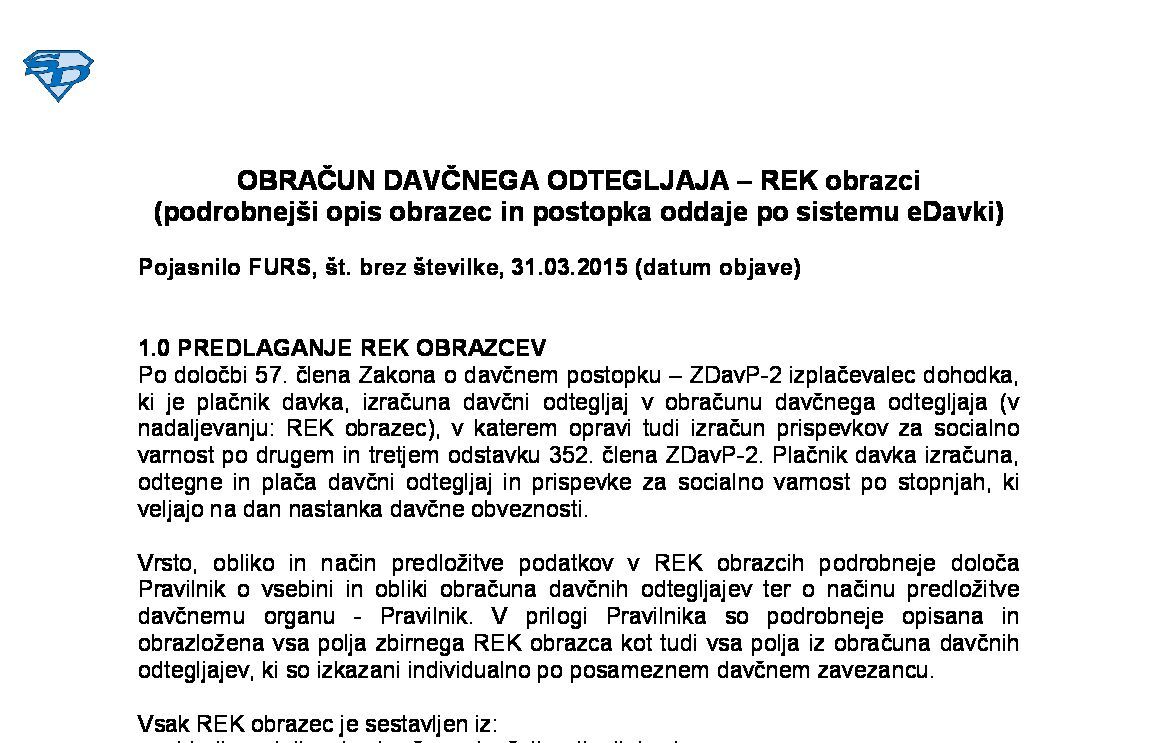 REK OBRAZCI – Podatki za oblikovanje prijave podatkov o osnovah in spremembe teh podatkov na REK obrazcu (podrobnejši opis – 6. in 7. izdaja) 08.01.2026 12.01.2026
