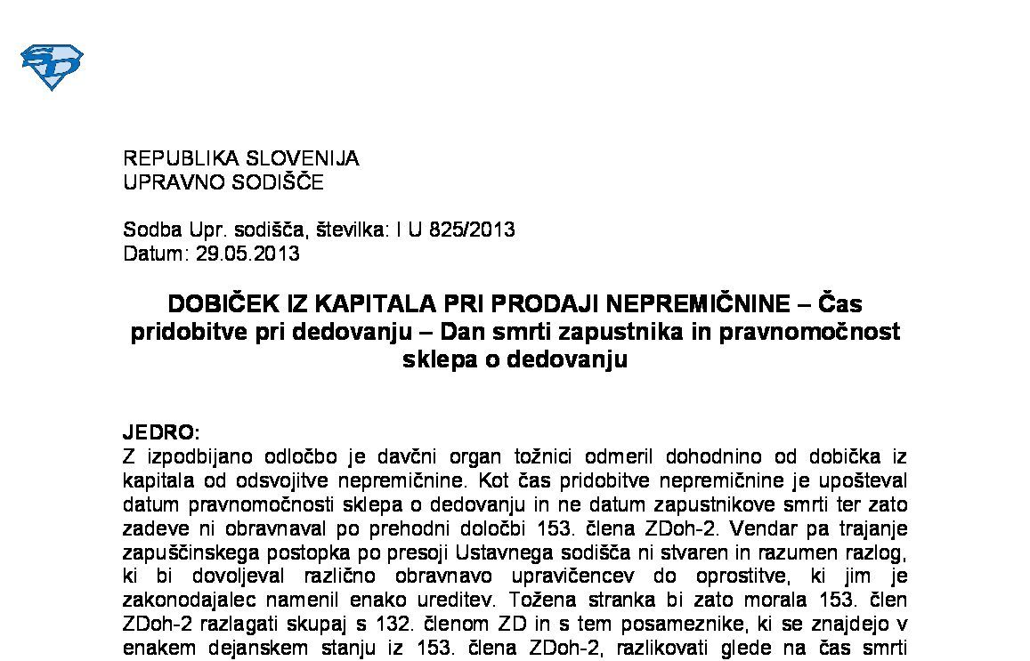 PREJEM POSLOVNEGA DELEŽA V DRUŽBI OB ANGAŽIRANJU PRI SANACIJI DRUŽBE – Darilo, ki se obdavčuje po ZDDD, ali dohodek obdavčen po ZDoh-2 (I U 1495/2022-13) 20.11.2024 10.07.2025