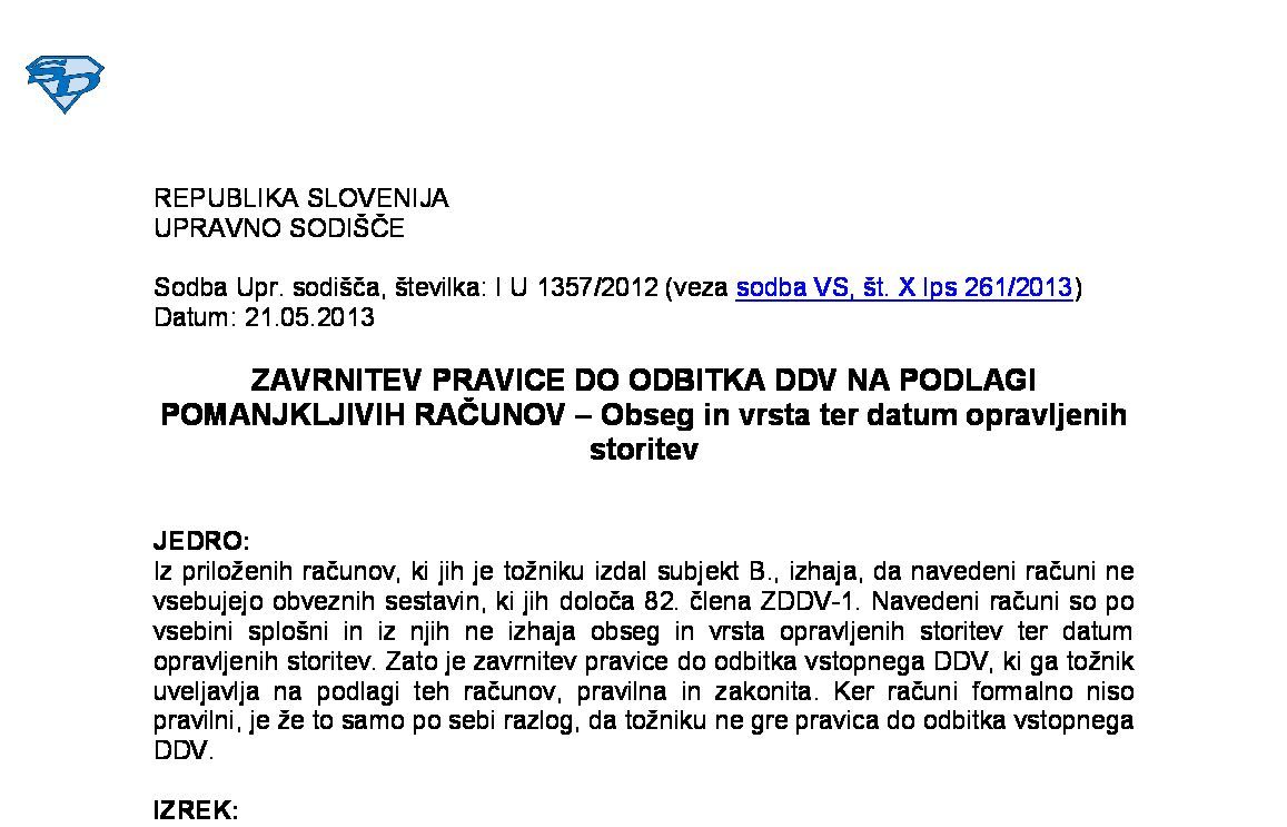 IZPOLNJEVANJE POGOJEV ZA DOBAVO BLAGA ZNOTRAJ UNIJE, OPROŠČENO PLAČILA DDV NA PODLAGI 46. ČLENA ZDDV-1 – Nepopolne CMR listine (I U 1704/2021-38) 27.11.2024 15.10.2025