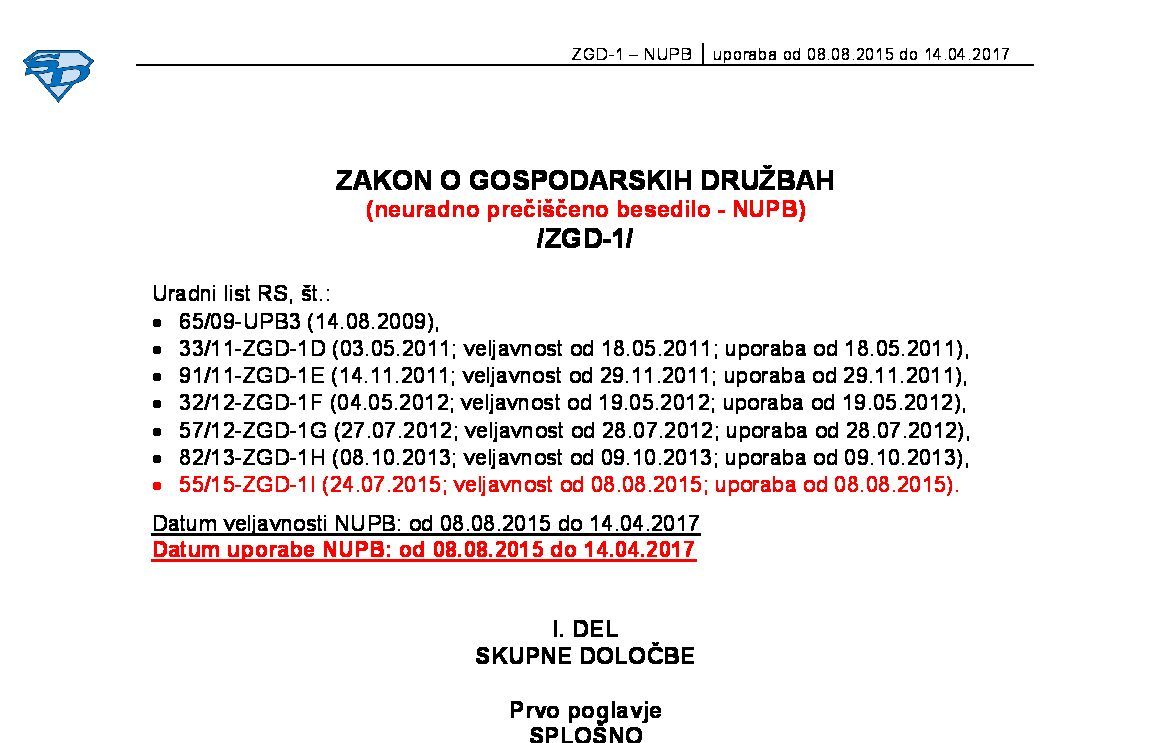 ZAKON O GOSPODARSKIH DRUŽBAH (ZGD-1 - neuradno prečiščeno besedilo) 08.10.2025 [!] 08.10.2025