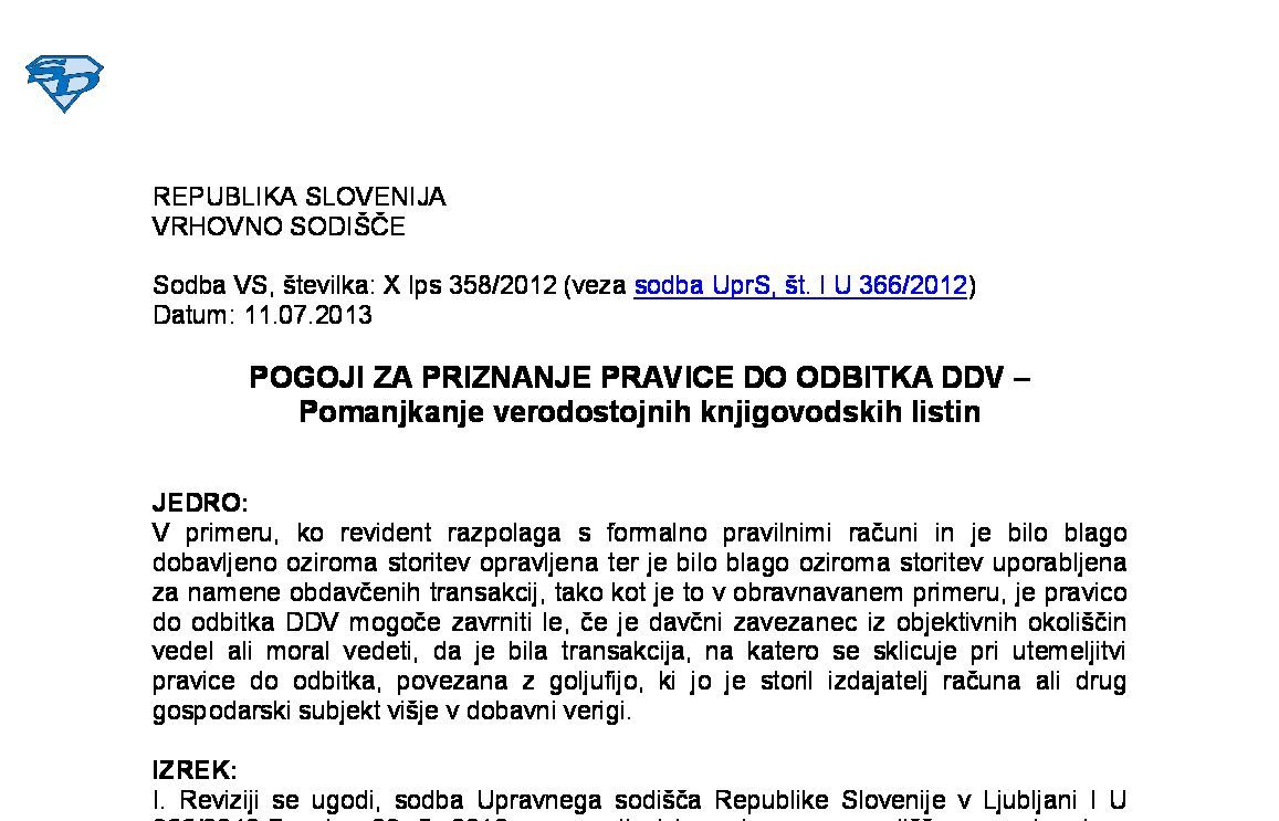 PRAVICA DO ODBITKA DDV – Dokazovanje obstoja goljufije na področju DDV s strani davčnega organa (X Ips 73/2021) 08.03.2023 13.06.2023
