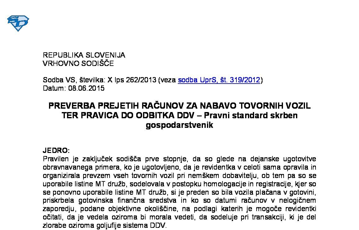 PRAVICA DO ODBITKA DDV – Dokazovanje obstoja goljufije na področju DDV s strani davčnega organa (X Ips 73/2021) 08.03.2023 13.06.2023