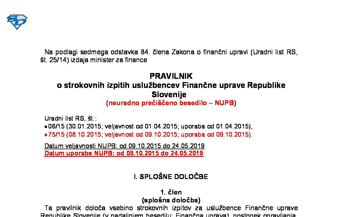 Pravilnik o službeni izkaznici uradnih oseb Finančne uprave Republike Slovenije (NUPB - neuradno prečiščeno besedilo) 30.09.2022 [!] 19.04.2022