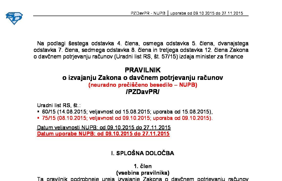 | ZAKON O DAVČNEM POTRJEVANJU RAČUNOV (ZDavPR - neuradno prečiščeno besedilo) | 01.01.2026 | 29.11.2024 | ||