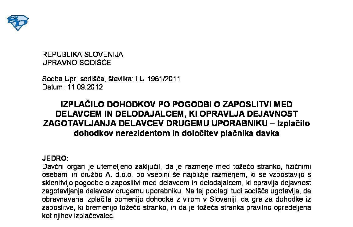 UGOTAVLJANJE REZIDENTSKEGA STATUSA – Dvojno rezidentstvo – Rezidentstvo po KIDO in po ZDoh-2 ( I U 609/2021-7) 17.05.2024 10.06.2025