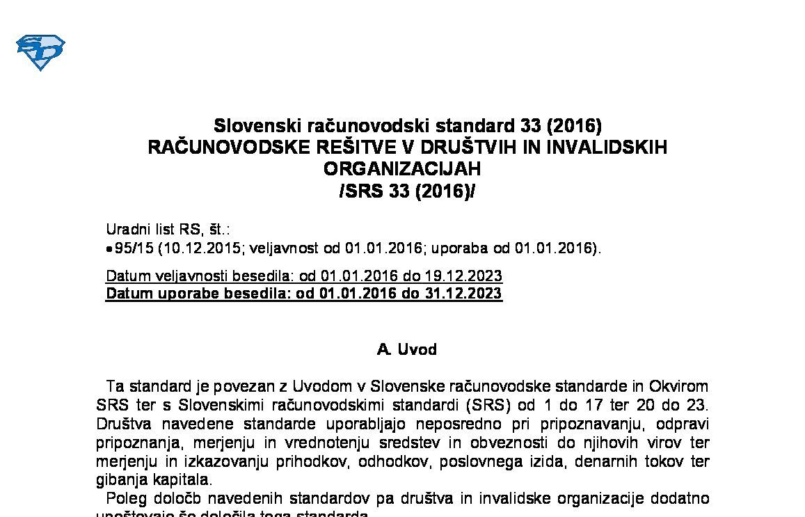35. SRS 35 (2016) - Računovodske rešitve v v socialnih podjetjih (neuradno prečiščeno besedilo - NUPB) 01.01.2019 [!] 31.12.2023 24.12.2018