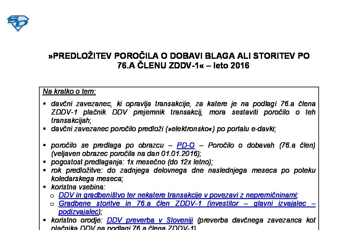 PREDLOŽITEV POROČILA O DOBAVI BLAGA ALI STORITEV PO 76.A ČLENU ZDDV-1 - leto 2026 04.12.2025