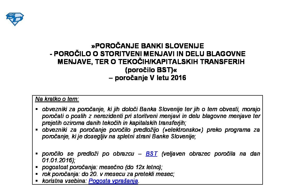 POROČANJE BANKI SLOVENIJE - MESEČNO POROČILO O KAPITALSKIH NALOŽBAH MED REZIDENTI IN NEREZIDENTI - TRANSAKCIJE (poročilo SN-T) - poročanje v letu 2026 12.01.2026