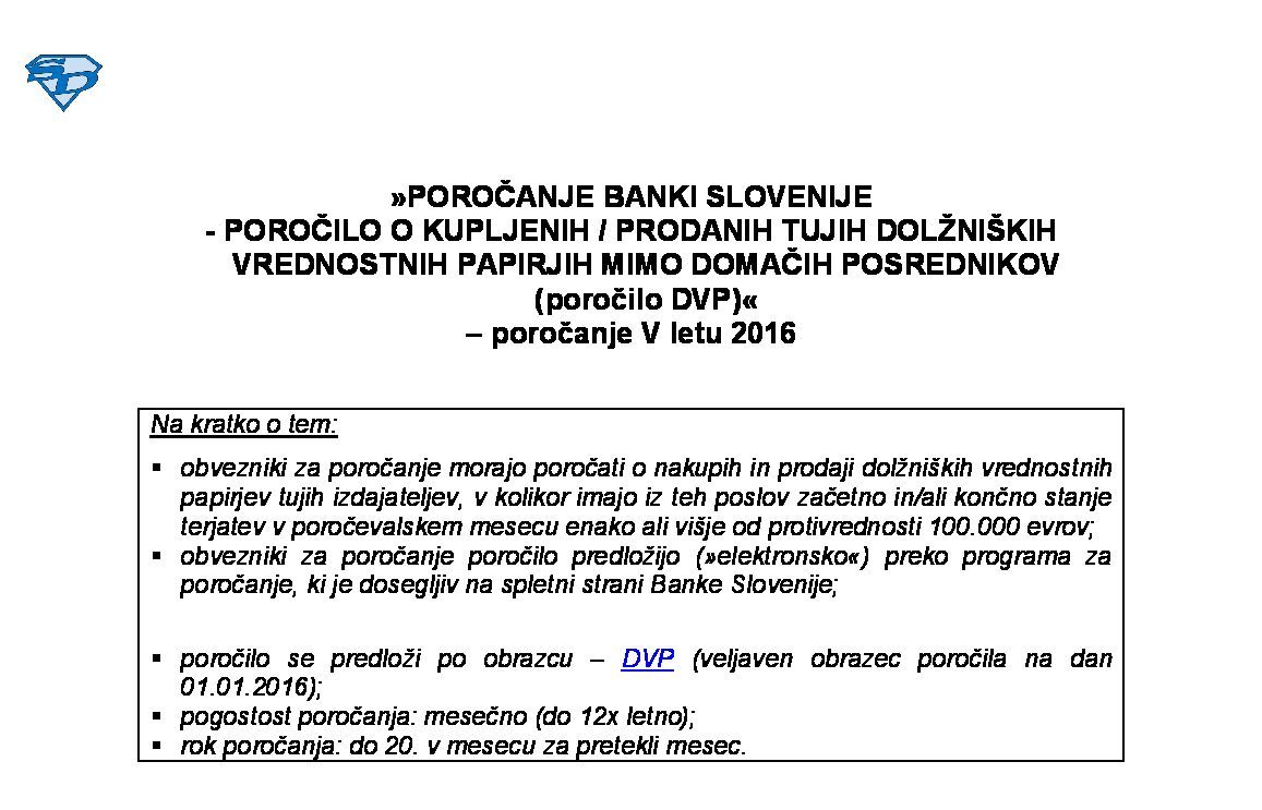 POROČANJE BANKI SLOVENIJE - POROČILO O POSLIH Z VREDNOSTNIMI PAPIRJI (poročila SRN, SNR, SNN, TNR, TRN, TRR) - poročanje v letu 2026 13.01.2026
