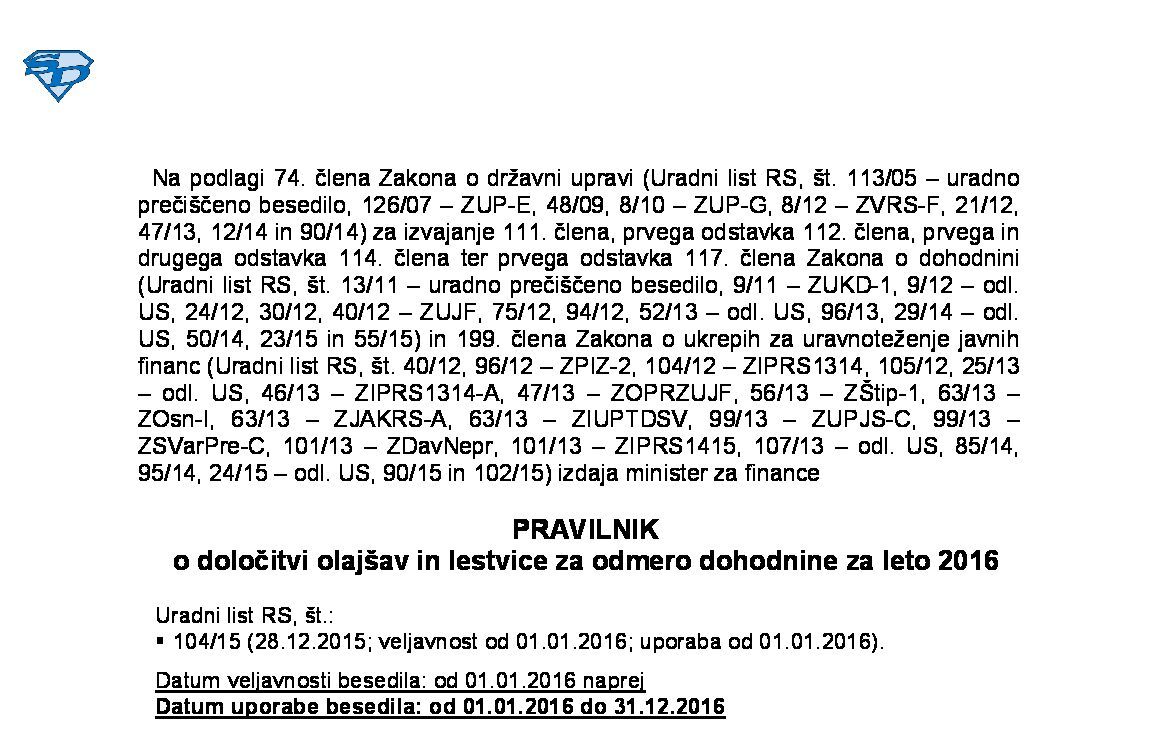 Pravilnik o določitvi usklajenih zneskov olajšav, enačbe za določitev olajšave in lestvice za odmero dohodnine za leto 2025 01.01.2025 31.12.2025 23.12.2024