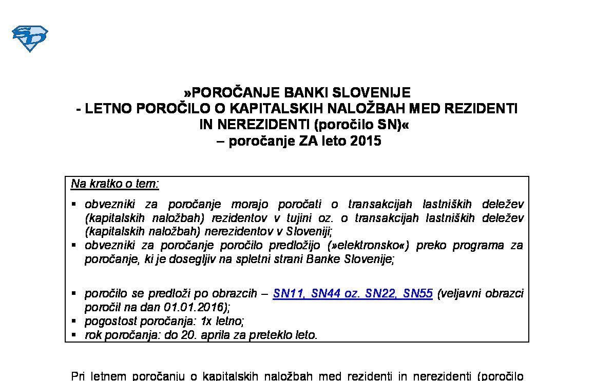 POROČANJE BANKI SLOVENIJE - LETNO POROČILO O KAPITALSKIH NALOŽBAH MED REZIDENTI IN NEREZIDENTI (poročilo SN) - poročanje za leto 2024 13.12.2024