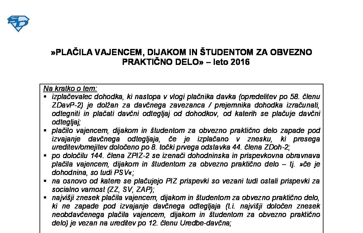 PLAČILO VAJENCEM, DIJAKOM IN ŠTUDENTOM ZA OBVEZNO PRAKTIČNO DELO - leto 2024 20.03.2024