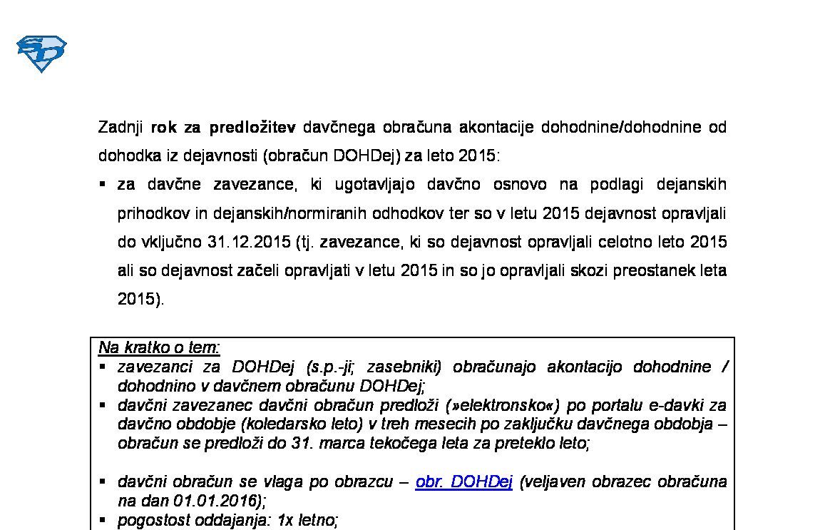 Sprememba predhodne AkDoh / AkDoh od dohodka iz dejavnosti za leto 2026 (obračun DOHDej) med davčnim letom 2026-08-03 00:00:00