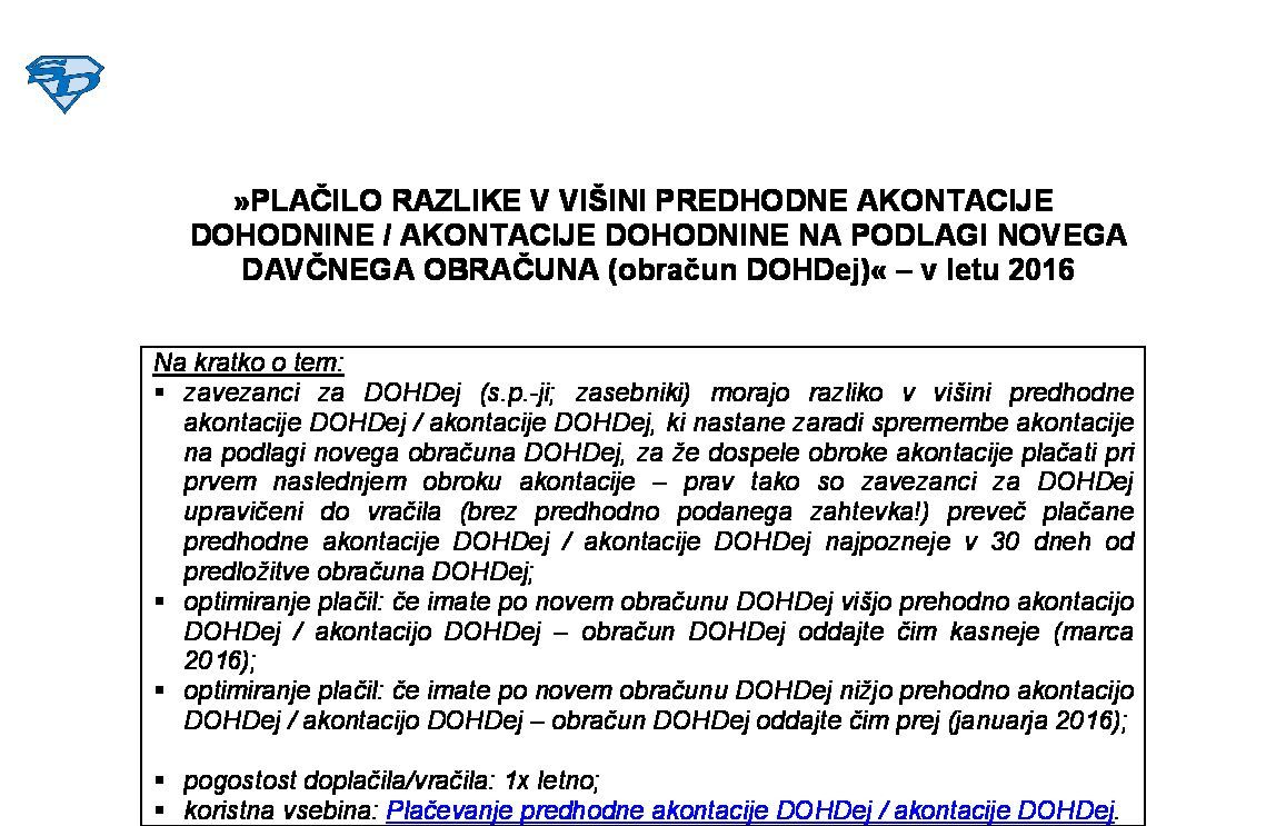 PLAČEVANJE PREDHODNE AKONTACIJE DOHODNINE / AKONTACIJE DOHODNINE OD DOHODKA IZ DEJAVNOSTI (obračun DOHDej) – v letu 2026 12.12.2025