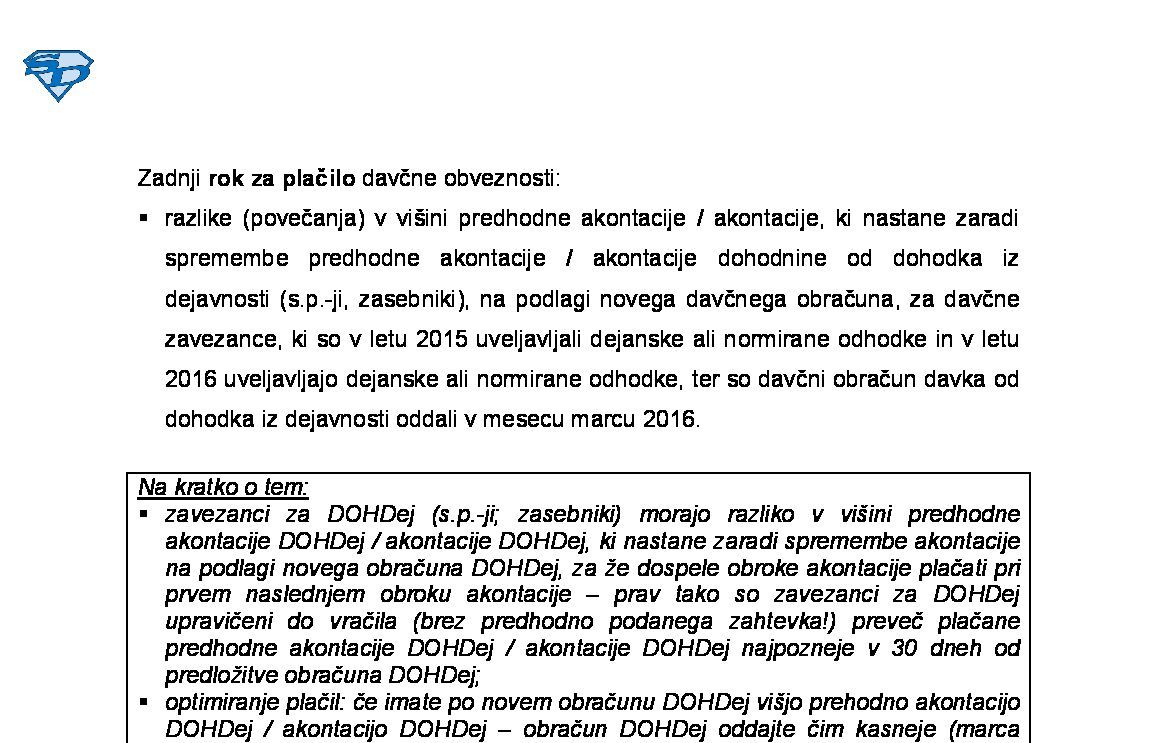 Sprememba predhodne AkDoh / AkDoh od dohodka iz dejavnosti za leto 2026 (obračun DOHDej) med davčnim letom 2026-08-03 00:00:00