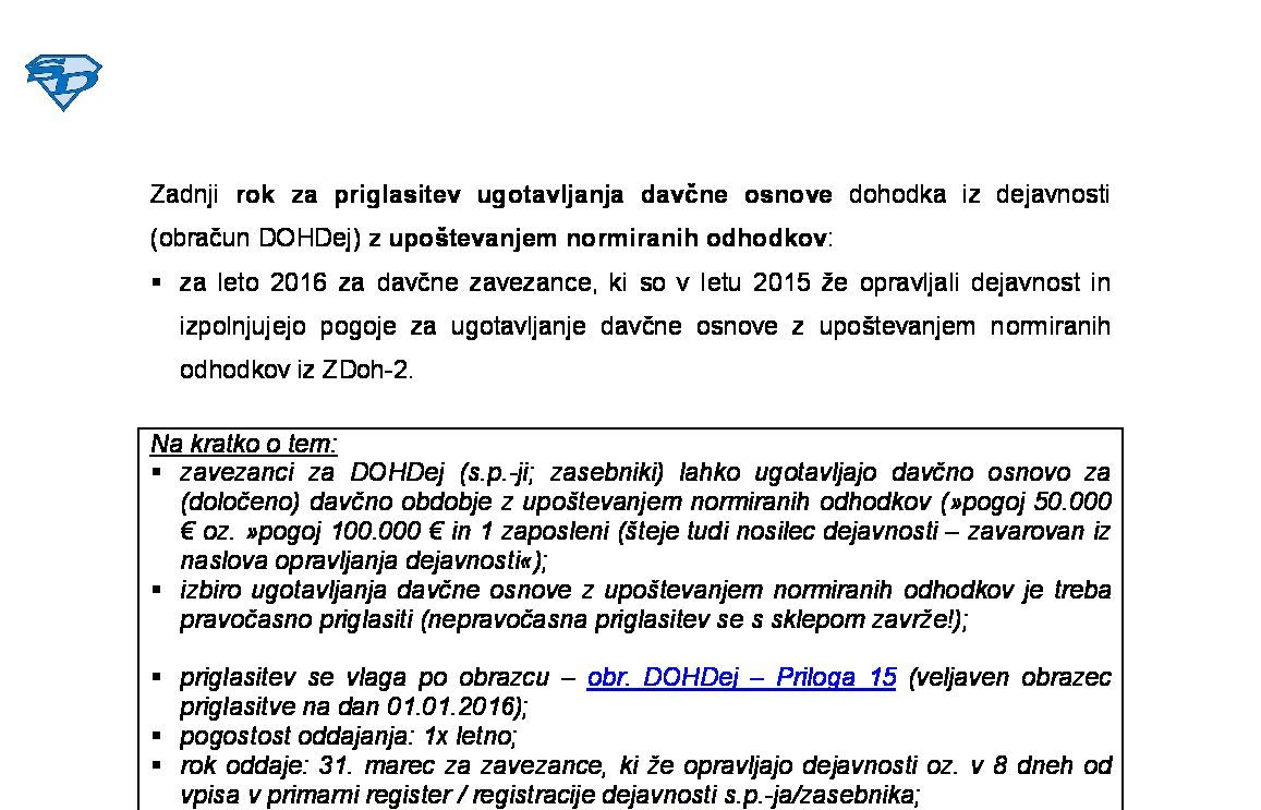 Sprememba predhodne AkDoh / AkDoh od dohodka iz dejavnosti za leto 2026 (obračun DOHDej) med davčnim letom 2026-12-01 00:00:00
