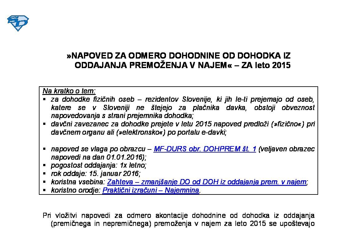 NAPOVED ZA ODMERO DODATNEGA DAVKA OD DOHODKOV ČLANOV POSLOVODSTEV IN NADZORNIH ORGANOV (DDDČPNO) - ZA leto 2024 29.01.2025