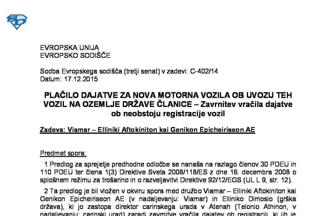 DAVEK NA NEPREMIČNINE – Oprostitev za zemljišča, stavbe in objekte, ki so del železniške infrastrukture – Pojem državna pomoč (C-453/23) 29.04.2025 13.05.2025