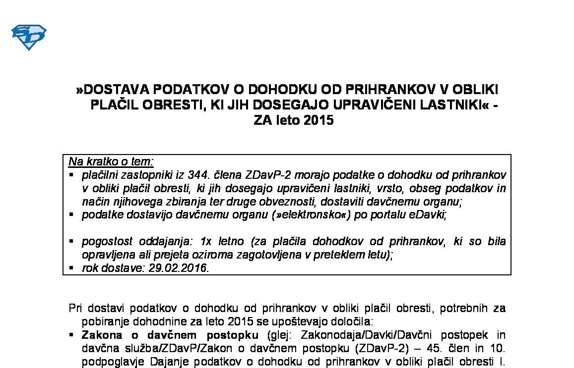 NAPOVED ZA ODMERO DOHODNINE OD DOBIČKA OD ODSVOJITVE VP IN DRUGIH DELEŽEV TER INVESTICIJSKIH KUPONOV (tudi pobot in odlog ugotavljanja) - ZA leto 2025 21.01.2026