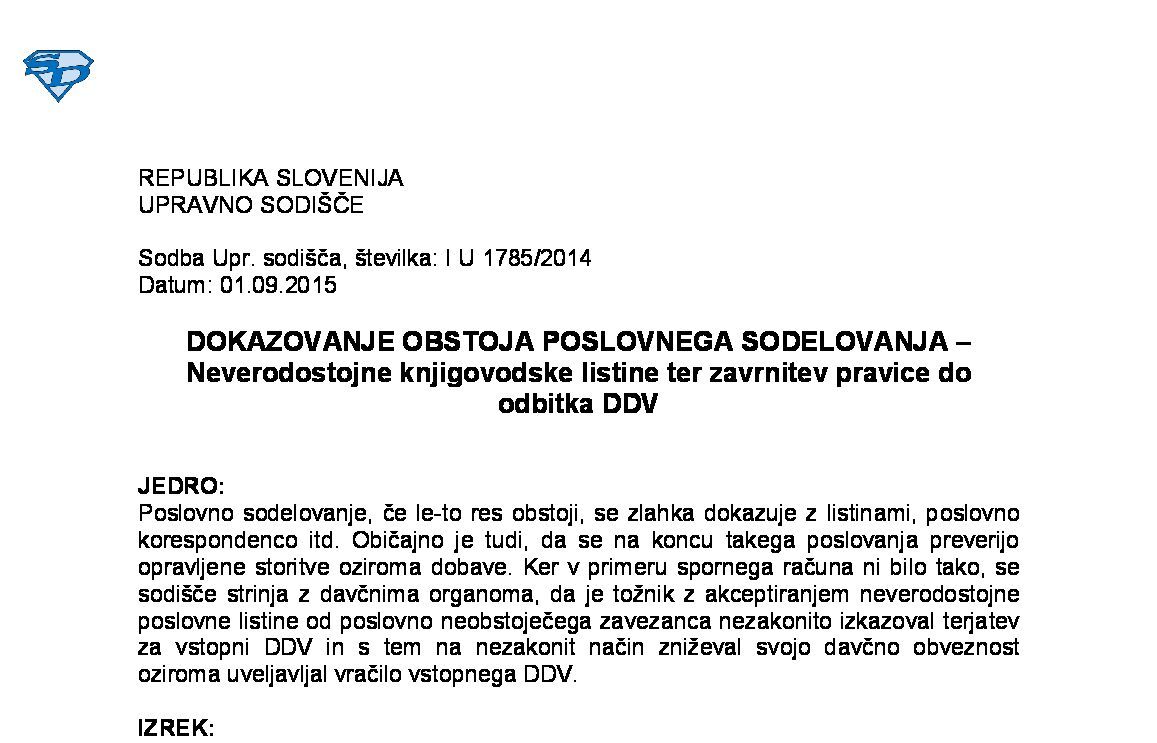 IZPOLNJEVANJE POGOJEV ZA DOBAVO BLAGA ZNOTRAJ UNIJE, OPROŠČENO PLAČILA DDV NA PODLAGI 46. ČLENA ZDDV-1 – Nepopolne CMR listine (I U 1704/2021-38) 27.11.2024 15.10.2025