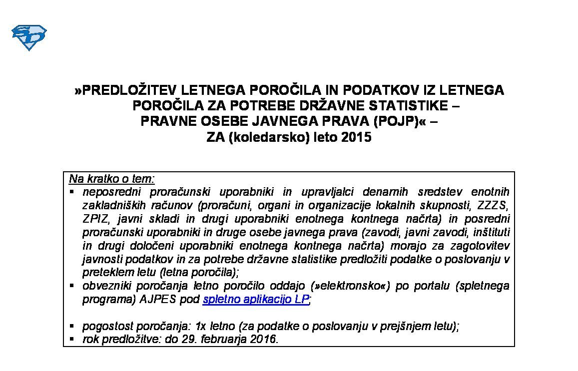 PREDLOŽITEV LETNEGA POROČILA IN PODATKOV IZ LETNEGA POROČILA ZA POTREBE DRŽAVNE STATISTIKE – PRAVNE OSEBE ZASEBNEGA PRAVA (POZP) - ZA (koledarsko) leto 2024 30.01.2025