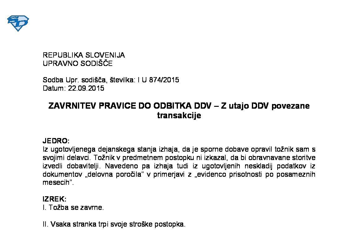 IZPOLNJEVANJE POGOJEV ZA DOBAVO BLAGA ZNOTRAJ UNIJE, OPROŠČENO PLAČILA DDV NA PODLAGI 46. ČLENA ZDDV-1 – Nepopolne CMR listine (I U 1704/2021-38) 27.11.2024 15.10.2025