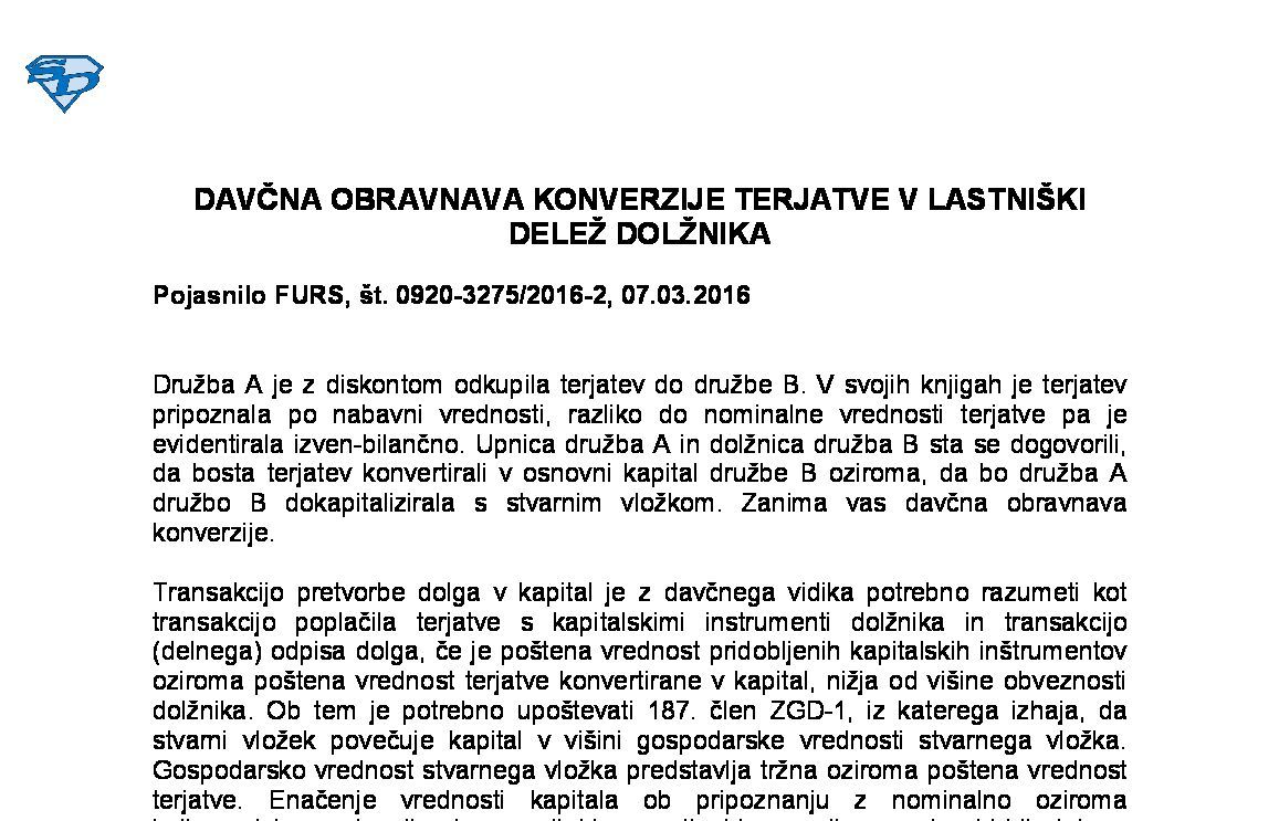 DAVČNA OBRAVNAVA SLABITEV FINANČNIH NALOŽB PO 22. členu ZDDPO-2 V POVEZVI Z DAVČNO OBRAVNAVO PRIPOJITEV PO 49. členu ZDDPO-2 19.09.2025 15.10.2025