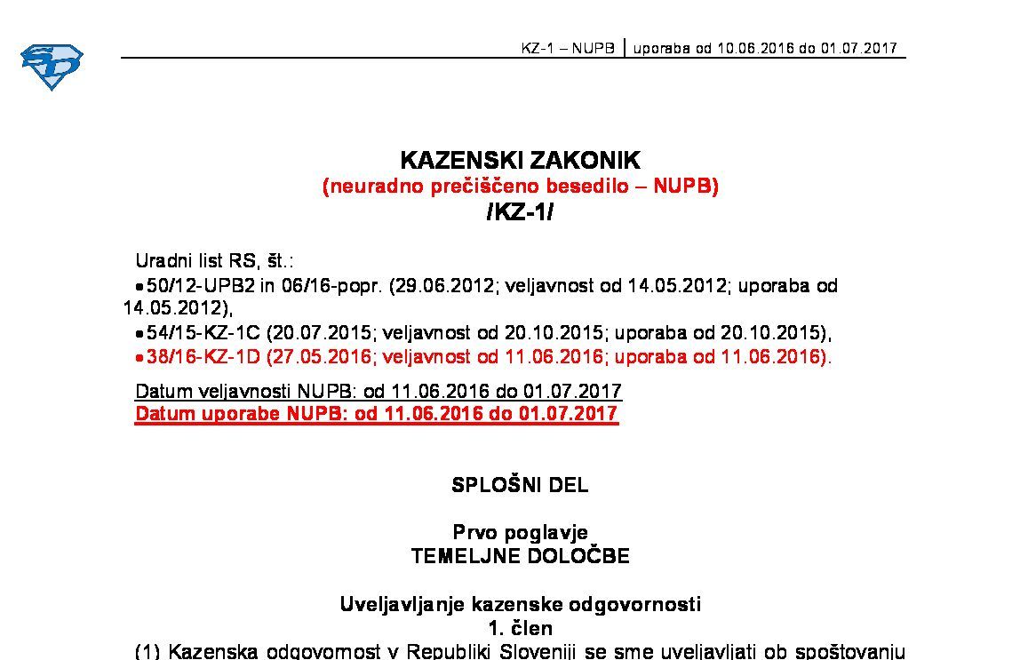 KAZENSKI ZAKONIK (KZ-1 - neuradno prečiščeno besedilo) 22.02.2023 09.02.2023