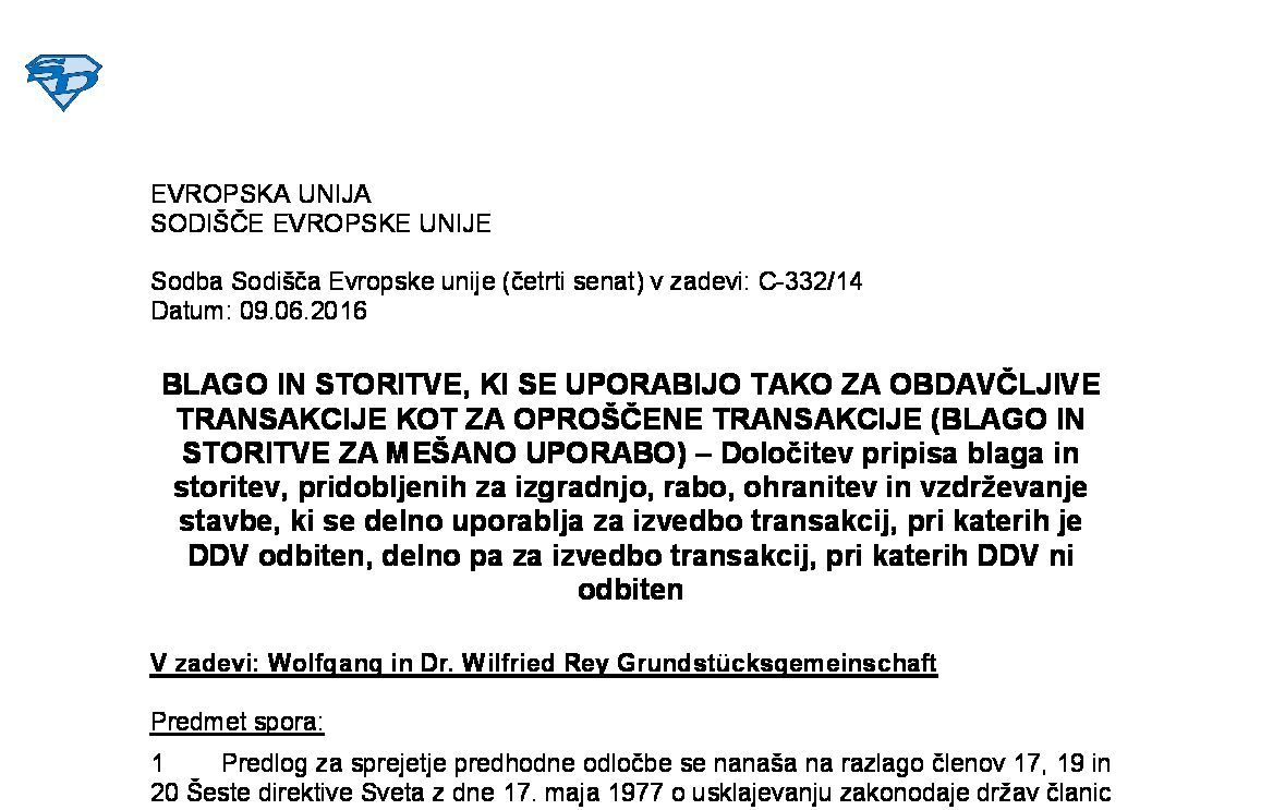 OPROSTITEV V ZVEZI Z DAJANJEM KREDITOV – OPROSTITEV V ZVEZI S FINANČNIMI TRANSAKCIJAMI – IZTERJAVA DOLGOV – Faktoring s prodajo terjatev – Faktoring z zastavno pravico (C-332/24) 23.10.2025 28.10.2025