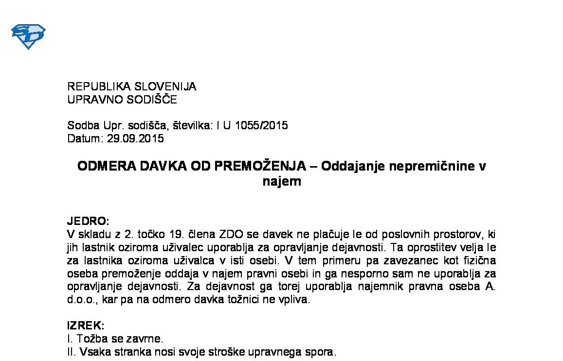 PREJEM POSLOVNEGA DELEŽA V DRUŽBI OB ANGAŽIRANJU PRI SANACIJI DRUŽBE – Darilo, ki se obdavčuje po ZDDD, ali dohodek obdavčen po ZDoh-2 (I U 1495/2022-13) 20.11.2024 10.07.2025