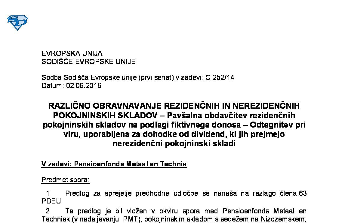 SKUPNI SISTEM OBDAVČITVE MATIČNIH DRUŽB IN ODVISNIH DRUŽB IZ RAZLIČNIH DRŽAV ČLANIC – Oprostitev DDPO od dividend, ki jih odvisna družba nerezidentka razdeli matični družbi rezidentki (C-228/24) 03.04.2025 07.04.2025