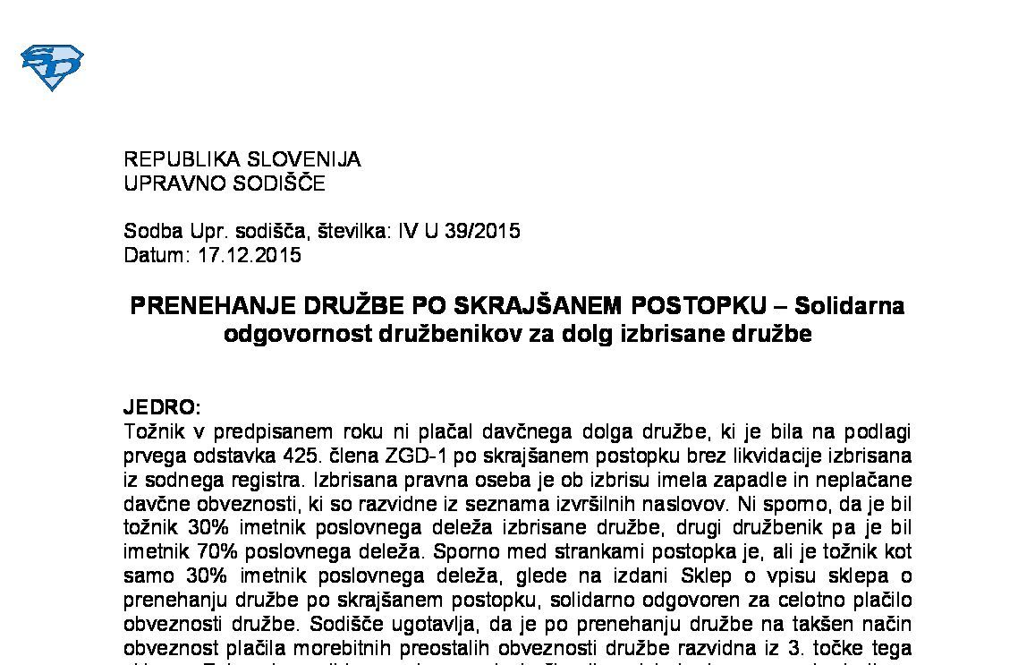 POSLOVODNA OSEBA IN DRUŽBENIK ZAVODA – Zavarovalna podlaga 040 – Prispevki za PIZ in prispevki za druga socialna zavarovanja (I U 880/2021-15) 19.06.2024 11.03.2025