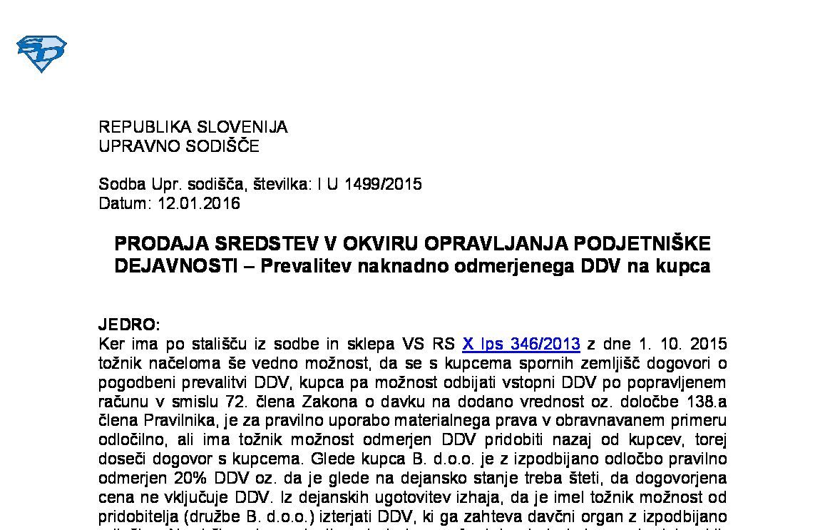 IZPOLNJEVANJE POGOJEV ZA DOBAVO BLAGA ZNOTRAJ UNIJE, OPROŠČENO PLAČILA DDV NA PODLAGI 46. ČLENA ZDDV-1 – Nepopolne CMR listine (I U 1704/2021-38) 27.11.2024 15.10.2025