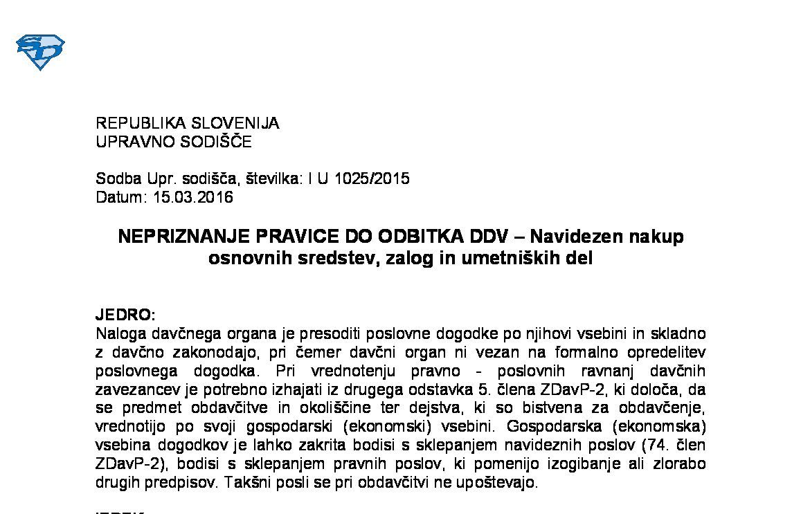 IZPOLNJEVANJE POGOJEV ZA DOBAVO BLAGA ZNOTRAJ UNIJE, OPROŠČENO PLAČILA DDV NA PODLAGI 46. ČLENA ZDDV-1 – Nepopolne CMR listine (I U 1704/2021-38) 27.11.2024 15.10.2025