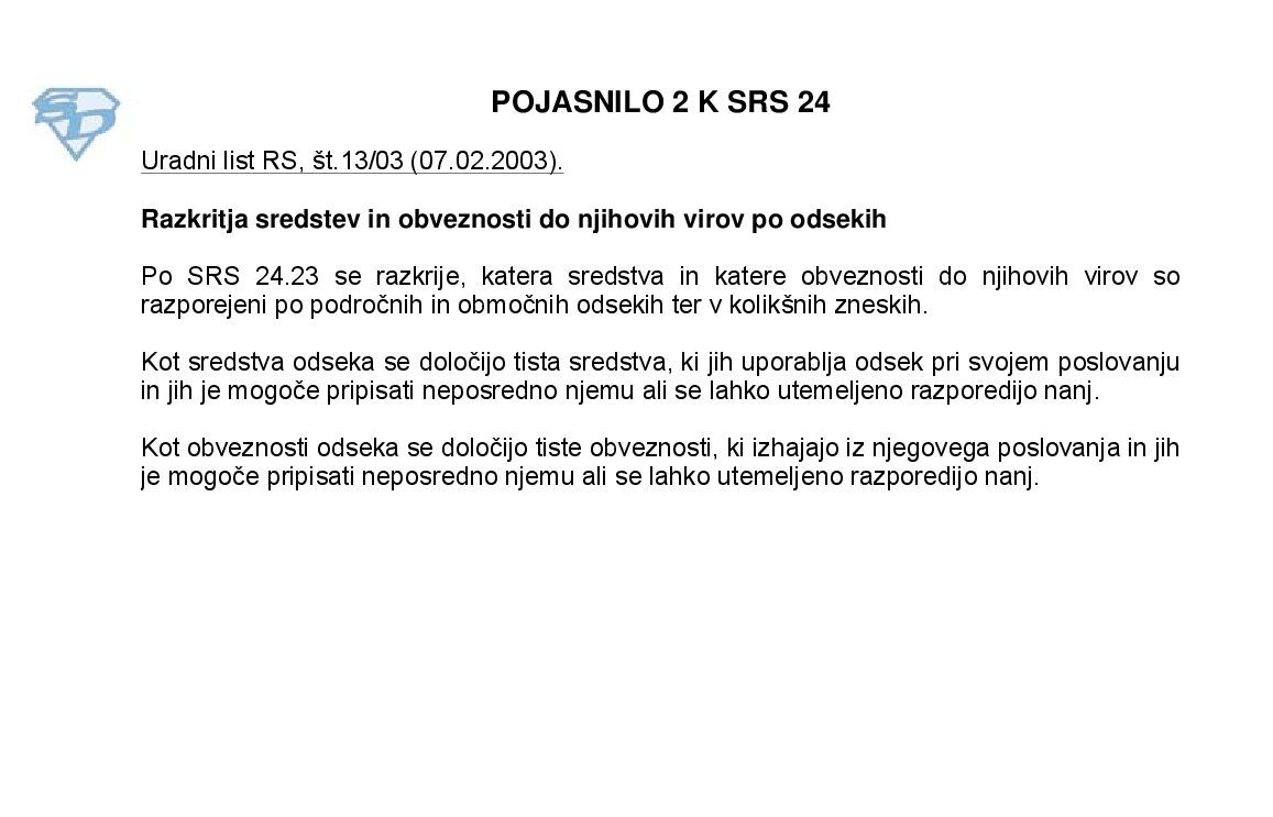| 24. SRS 24 - Pojasnilo 3: Knjigovodsko obravnavanje popravka bistvene napake zaradi poravnavanja obveznosti po odločbi davčnih oblasti | 02.04.2005 | [!] | 31.12.2005 | 21.03.2005 |