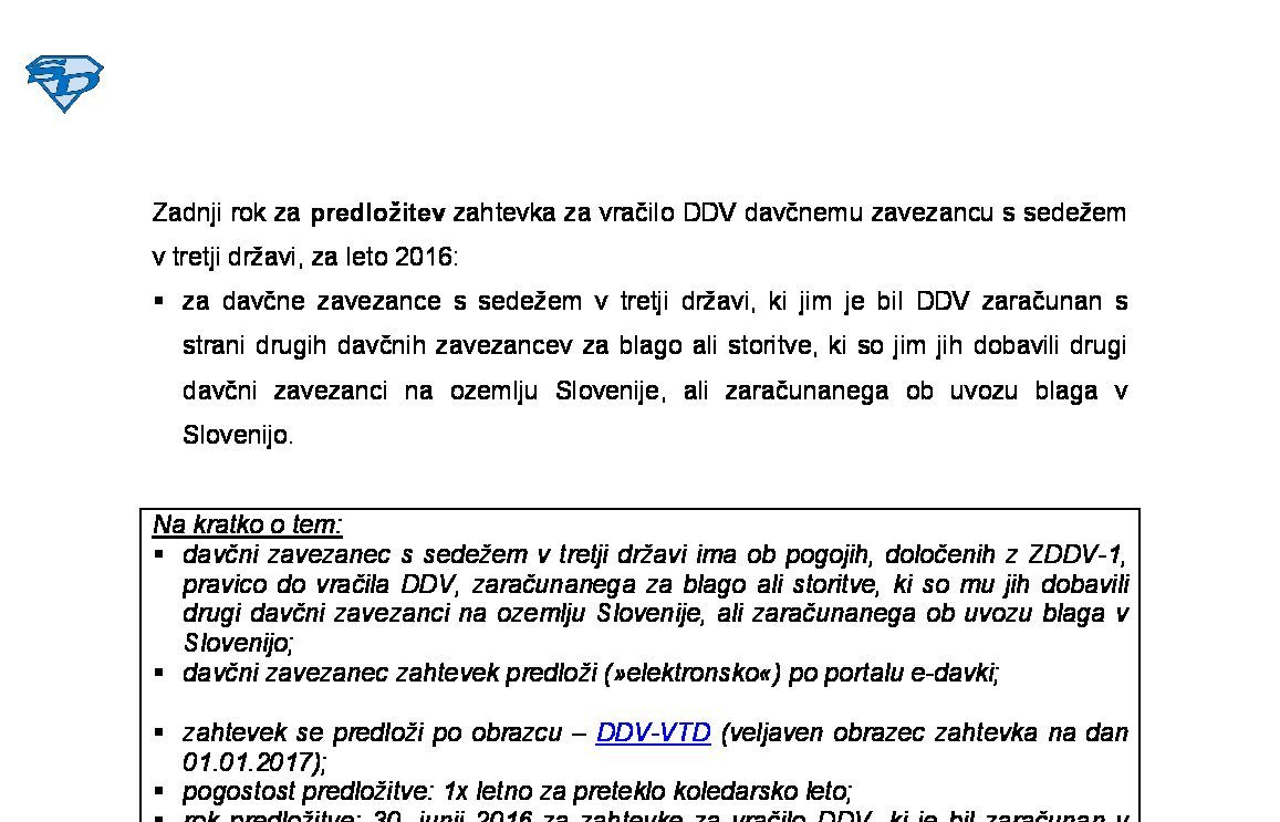 Predložitev zahtevka za vračilo DDV davčnemu zavezancu s sedežem v Sloveniji, ki ima pravico do vračila v drugi državi članici 2026-09-30 00:00:00
