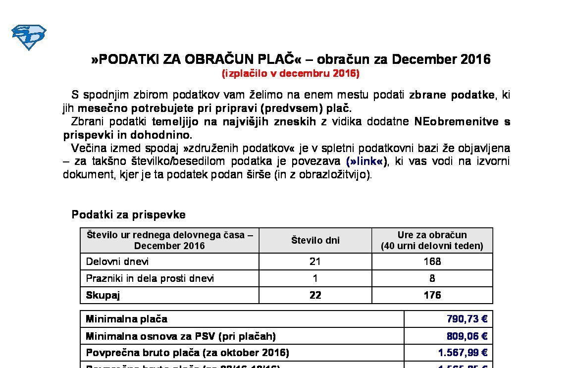 PODATKI ZA OBRAČUN PLAČ – obračun za NOVEMBER 2025 21.11.2025