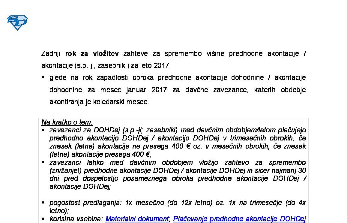Sprememba predhodne AkDoh / AkDoh od dohodka iz dejavnosti za leto 2026 (obračun DOHDej) med davčnim letom 2026-12-01 00:00:00