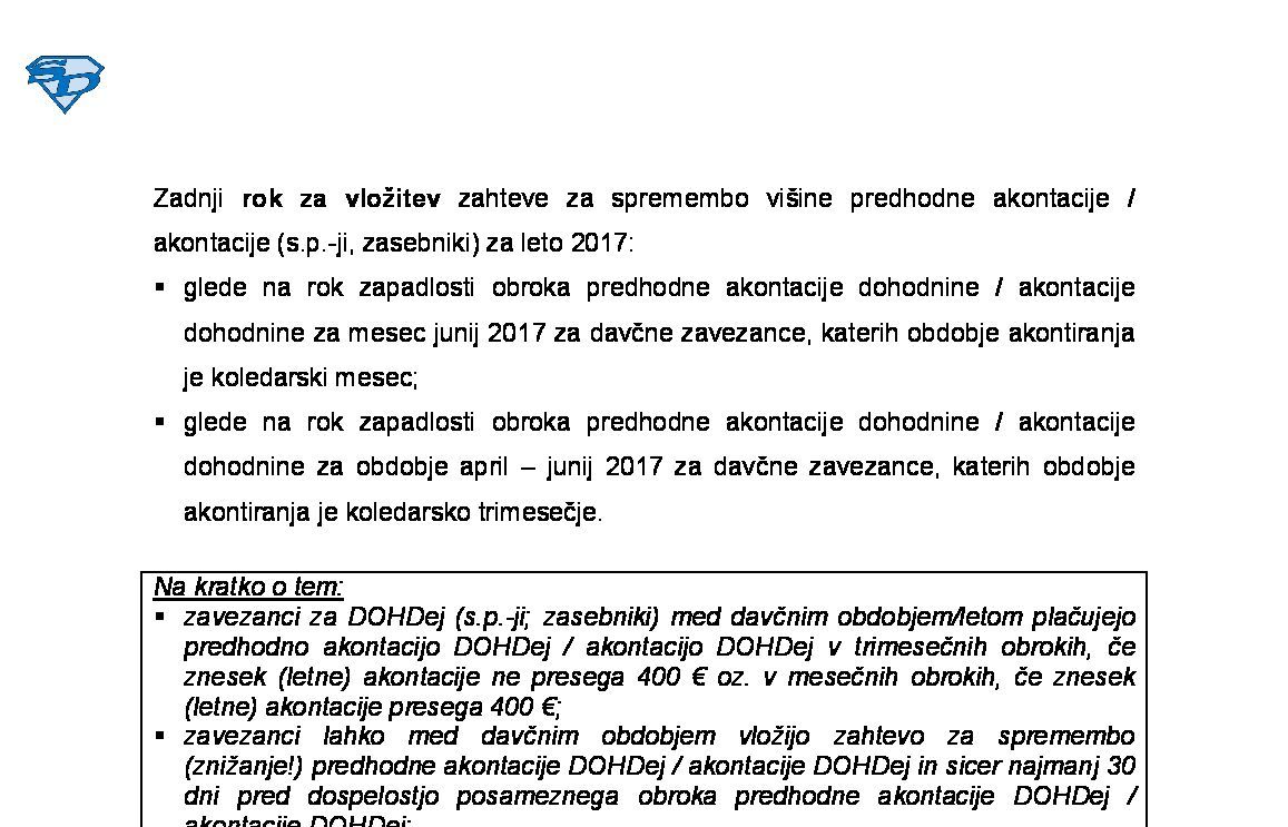 Sprememba predhodne AkDoh / AkDoh od dohodka iz dejavnosti za leto 2026 (obračun DOHDej) med davčnim letom 2026-08-03 00:00:00