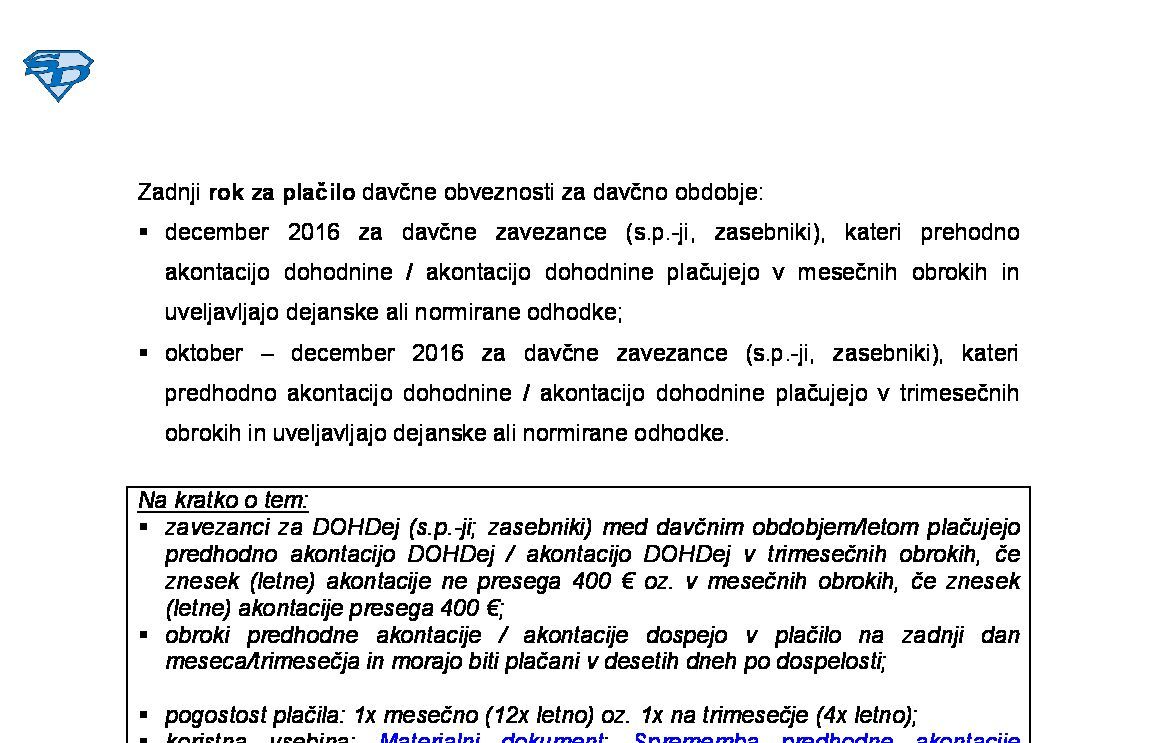 Sprememba predhodne AkDoh / AkDoh od dohodka iz dejavnosti za leto 2026 (obračun DOHDej) med davčnim letom 2026-12-01 00:00:00