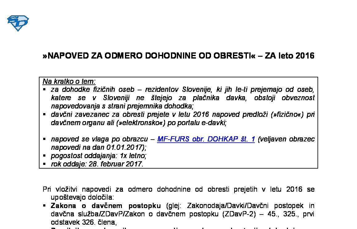 NAPOVED ZA ODMERO DAVKA OD DOBIČKA OD ODSVOJITVE IZVEDENIH FINANČNIH INSTRUMENTOV (DDOIFI) - ZA leto 2024 29.01.2025