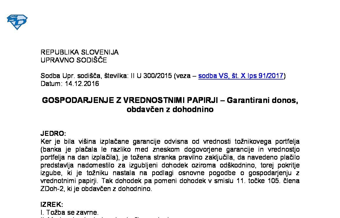 PREJEM POSLOVNEGA DELEŽA V DRUŽBI OB ANGAŽIRANJU PRI SANACIJI DRUŽBE – Darilo, ki se obdavčuje po ZDDD, ali dohodek obdavčen po ZDoh-2 (I U 1495/2022-13) 20.11.2024 10.07.2025