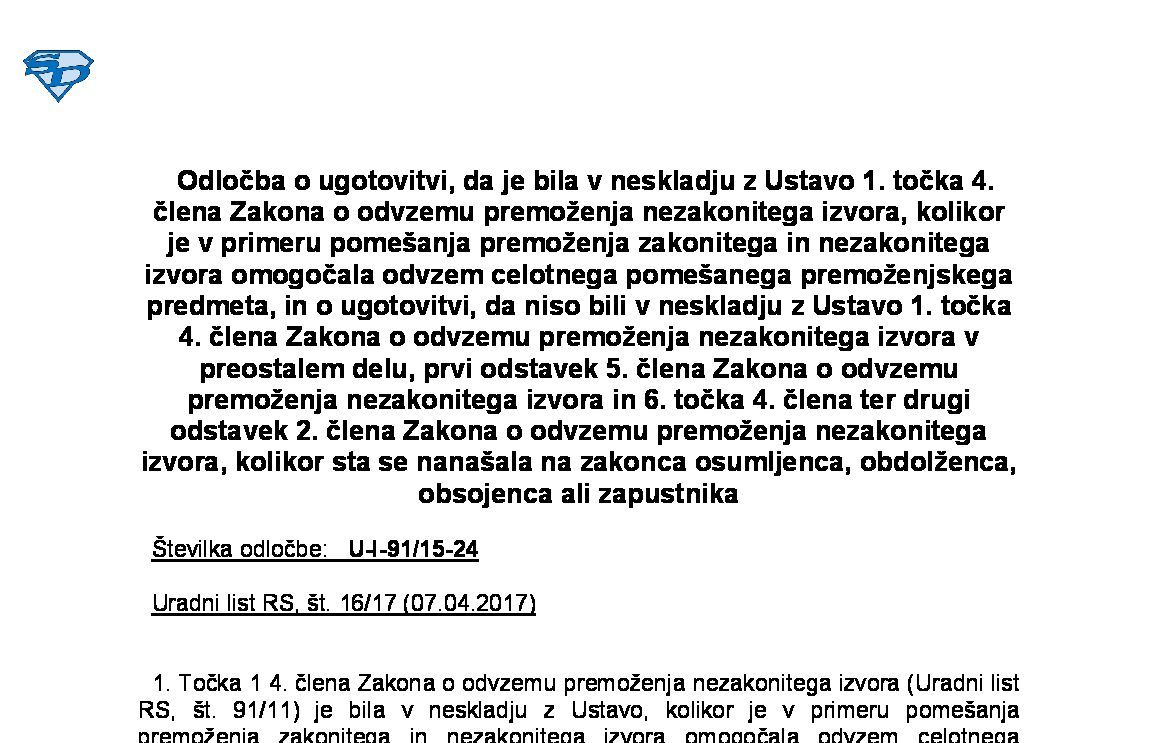 Odločba Ustavnega sodišča - tretji odstavek 61. člena ZP-1 (31.03.2017) 09.03.2017 06.04.2017