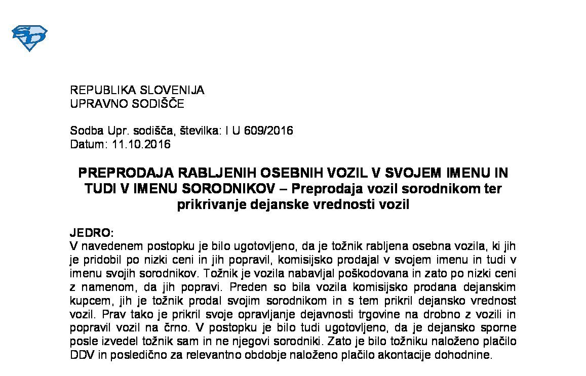 PRIDOBITEV VOZILA – PREDPLAČILO ZA PRIHODNJO PRODAJO VOZILA – Pridobitev novega ali rabljenega vozila (I U 1443/2022-29) 23.10.2024 19.03.2025